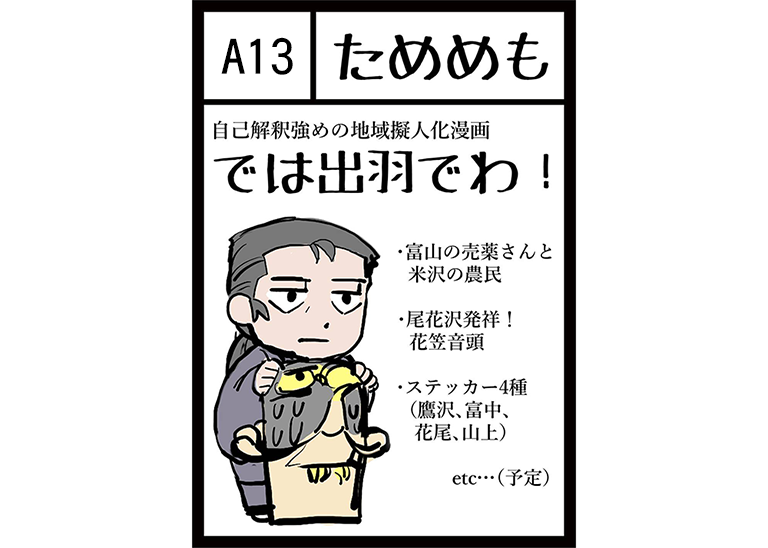 地元の地方擬人化漫画「では出羽でわ」を頒布予定です。前回の加筆修正版に加え花笠編を収録予定です。