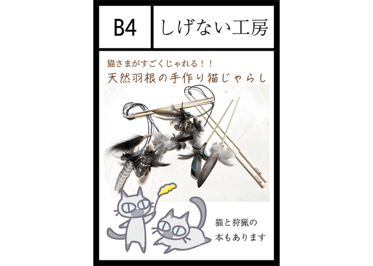 ねこ様がすごくじゃれる天然羽根・毛で作った猫じゃらし。ハンターの店主が手作りしたホンモノです。